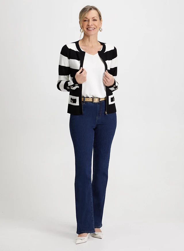 Stripe Print Blouse & Pull-On Bootcut Jeans