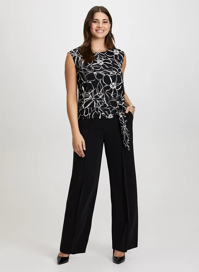 Tie Detail Sleeveless Top & Modern Fit Wide Leg Pants