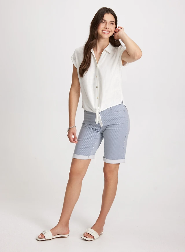 Tie-Front Blouse & Rivet Bermuda Shorts
