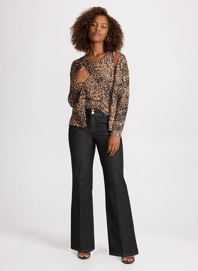 Animal Print Eyelet Tee & Sash Denim Shorts