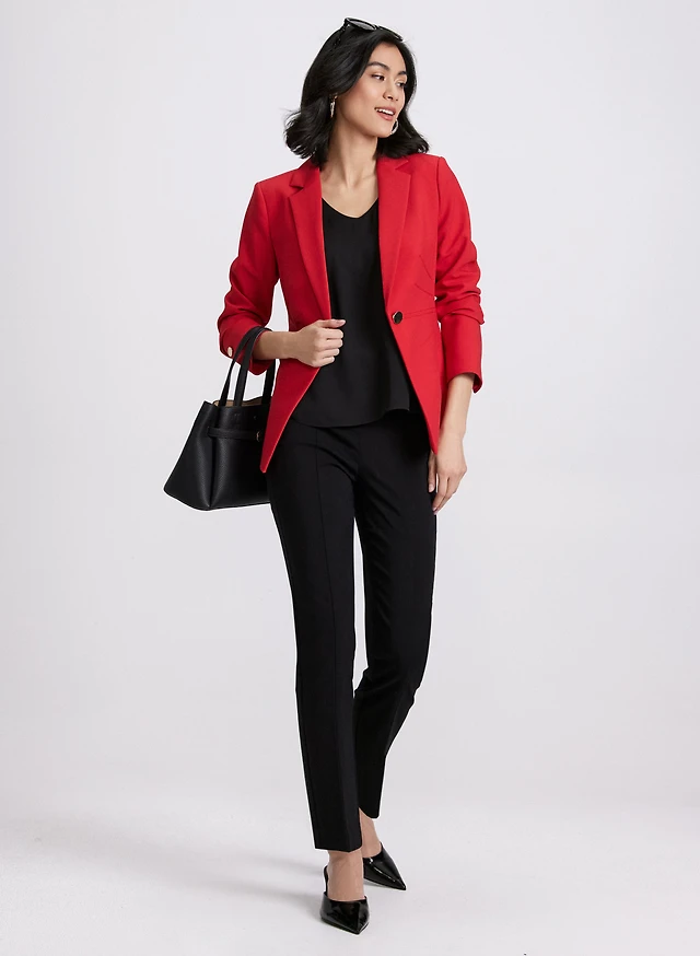 Short Linen-Blend Shacket & Wide-Leg Crepe Pants