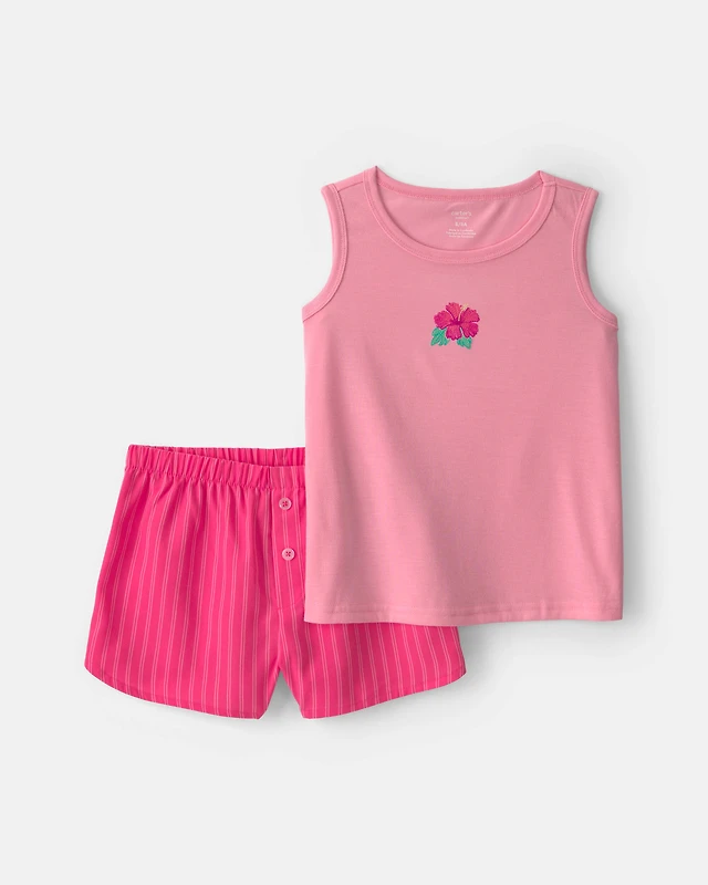 Girls 2-Piece Flower Sleeveless Pajama Set - Pink