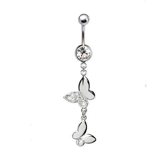 316L Surgical Steel Dainty Double Butterfly with CZ Wing Dangle Belly Ring