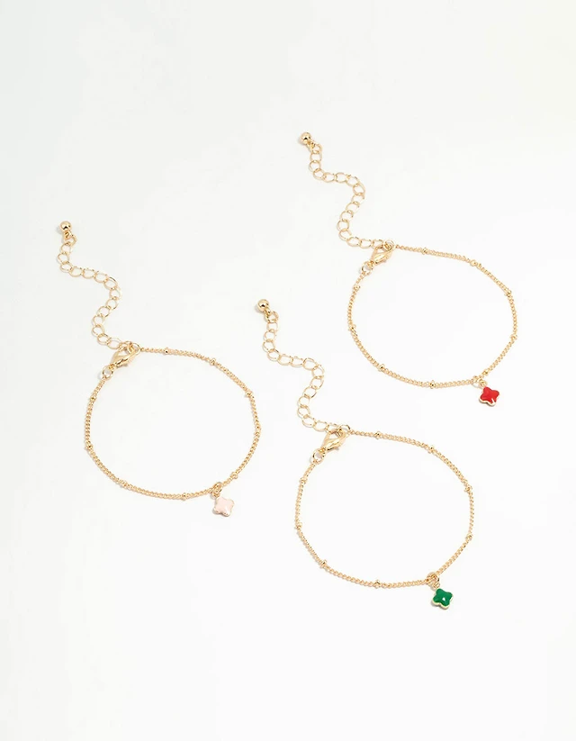 Waterproof Gold Plated Stainless Steel Diamante Clover & Heart Earring Stack Pack
