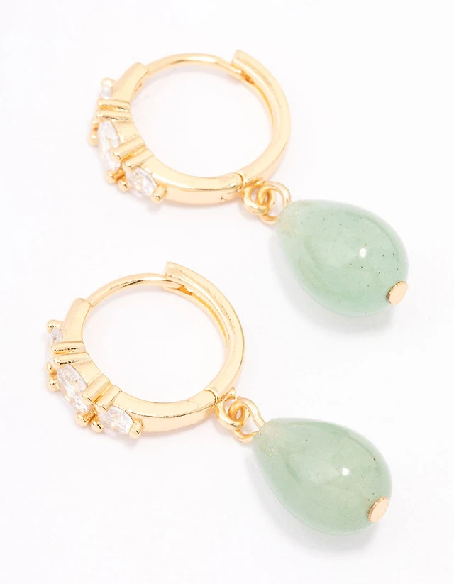 Waterproof Gold Plated Stainless Steel Green Baguette Huggie Earrings