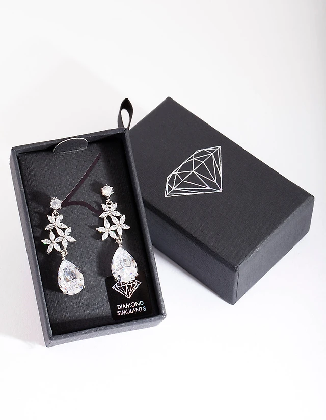 Silver Cubic Zirconia Crown Jewel Drop Earrings
