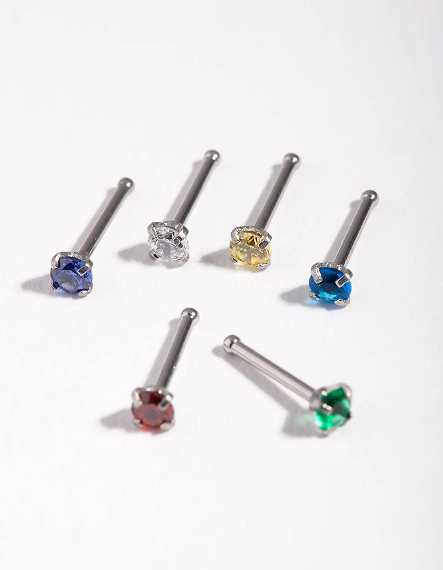 Gold Surgical Steel Mixed Diamante Nose Stud 6-Pack