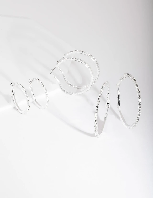 Gold Plated Cubic Zirconia Illusion Layered Hoop Earrings