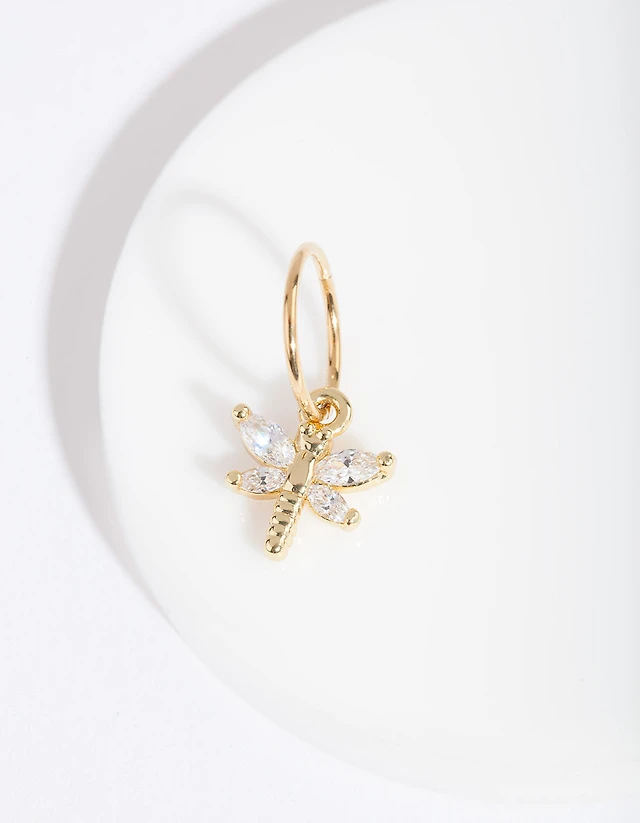 Gold Surgical Steel Cubic Zirconia Dragonfly Clicker Earring