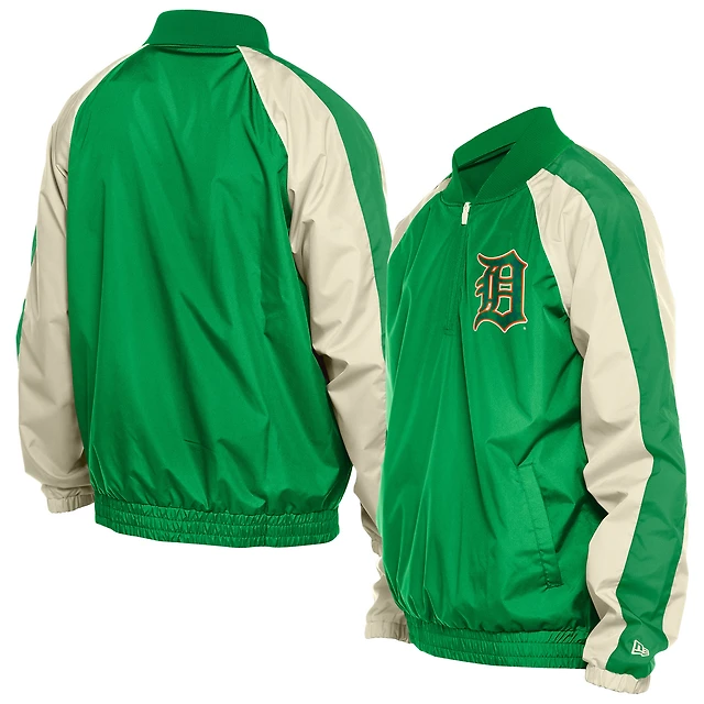 Men's New Era Kelly Green Detroit Tigers St. Patrick's Day Ripstop Raglan Quarter-Zip Windbreaker