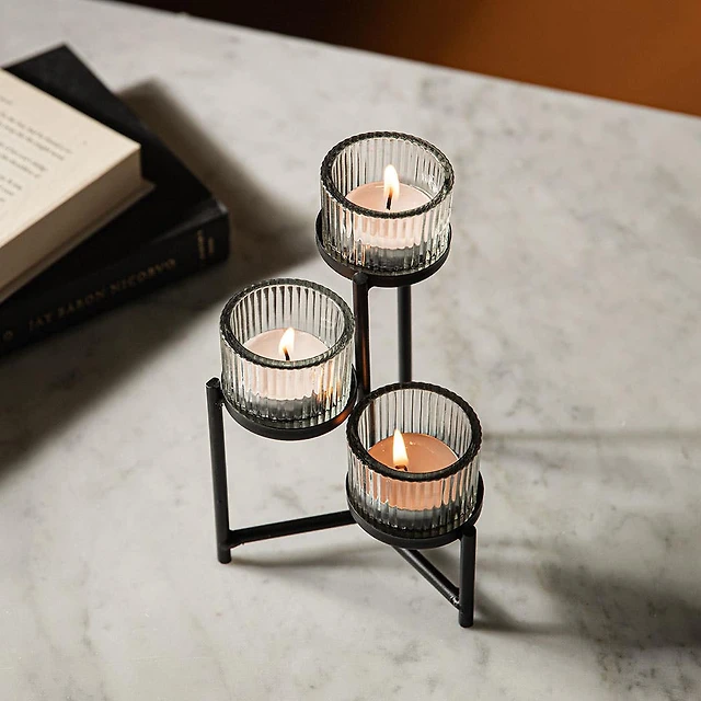 KSP Elise Stem Glass Tealight Candle Holder - Set of 3 (Clear)