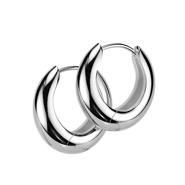 Pair of 316L Surgical Steel Gold PVD Oval Shaped Thick Hoop Earrings
