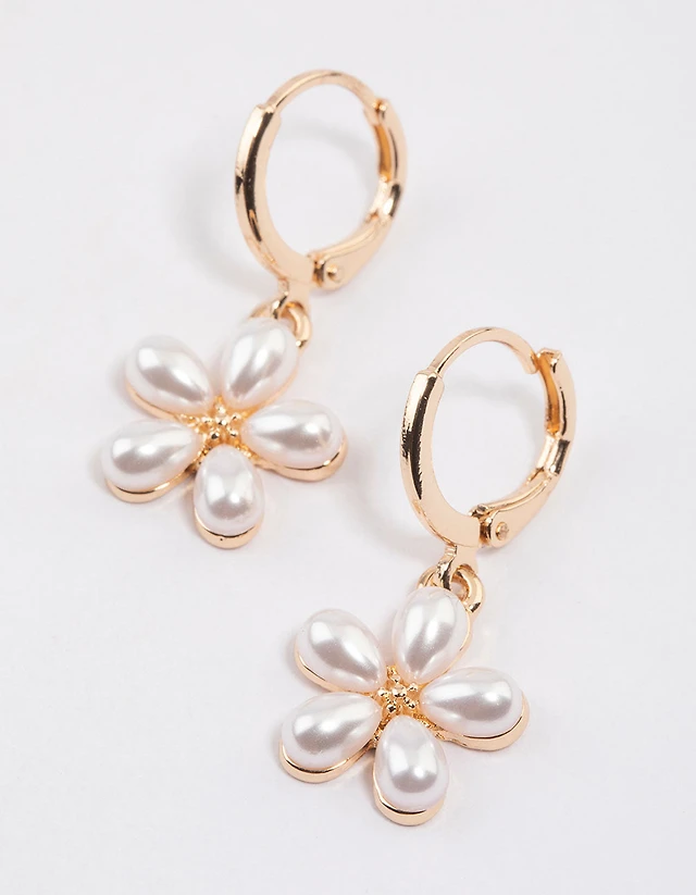 Gold Diamante Pearl Floral Clip On Earrings 4-Pack