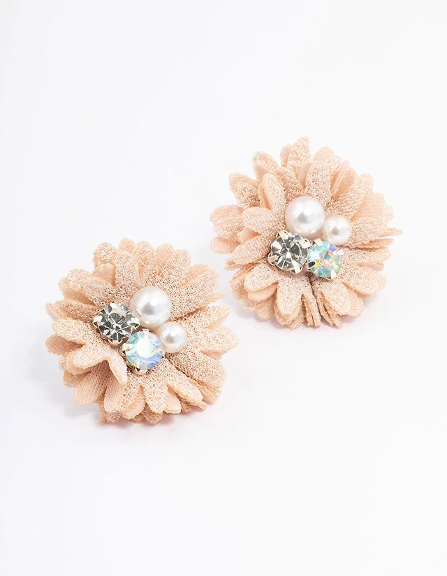 Brown Pearlised Flower & Pearl Hoop Earrings