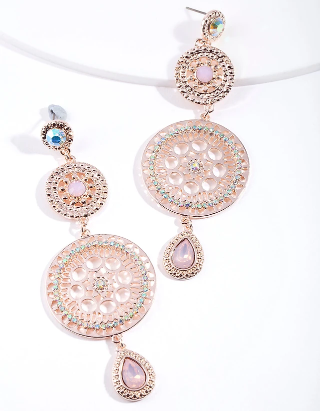 Gold Diamante Disc Drop Earrings
