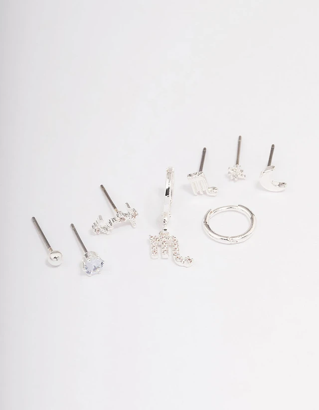 Gold Plated Brass Cubic Zirconia April Birthstone Earrings 4 Pack