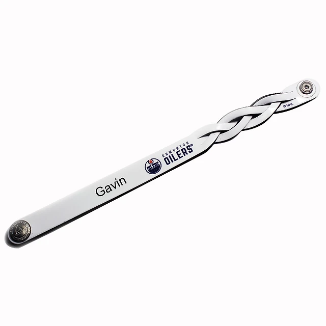 White Tampa Bay Lightning Personalized Leather Single Braid Bracelet