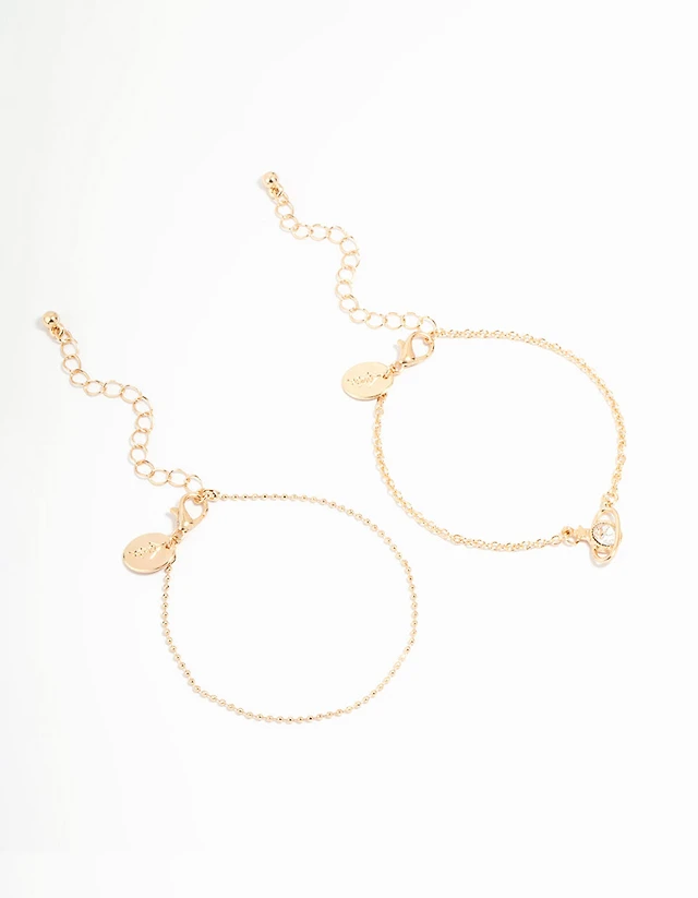Gold Ball Planet Diamante Bracelets 2-Pack