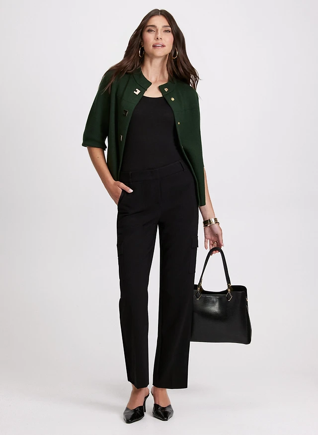Ottoman Cardigan & Sleeveless Crepe Blouse