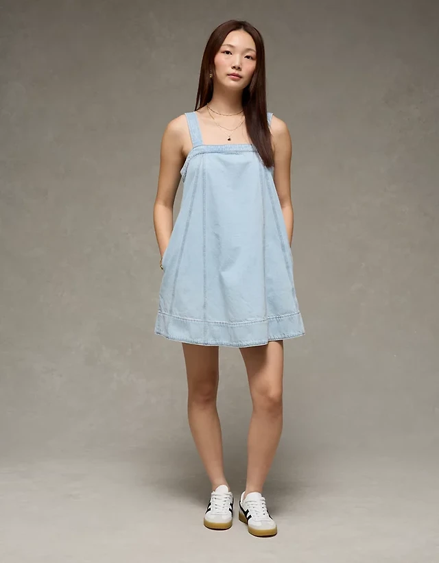 AE Denim Bow Back Babydoll Mini Dress