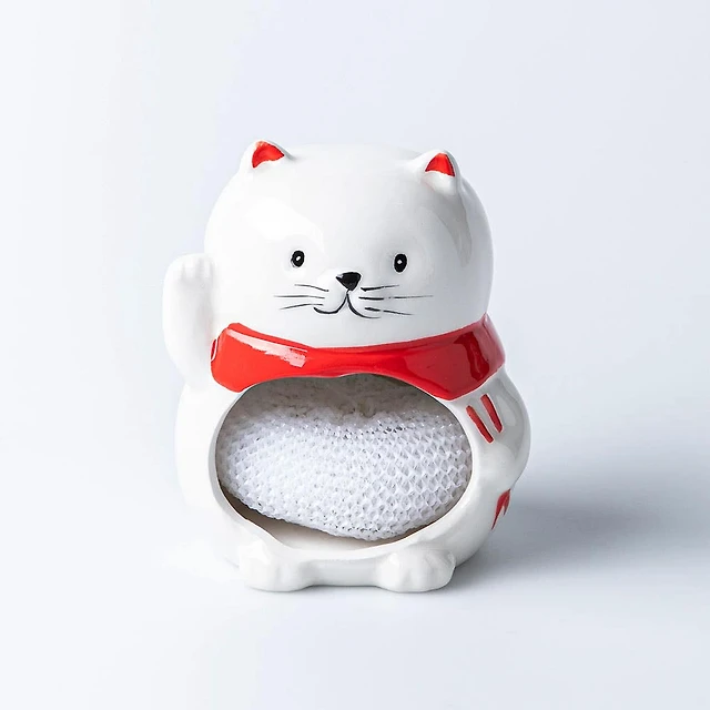 Boston Warehouse Scrubby 'Happy Cat' Ceramic Scrubby Holder