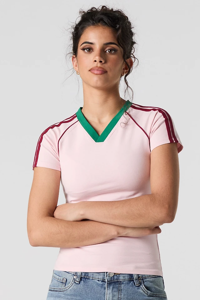 Contrast V-Neckline T-Shirt