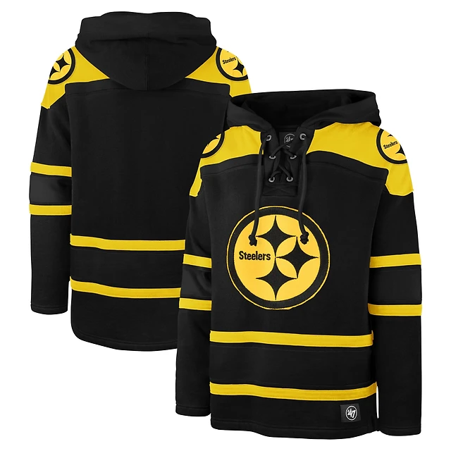 Men's '47 Black Pittsburgh Steelers Split Zone Cornerback Duo Lacer Hoodie