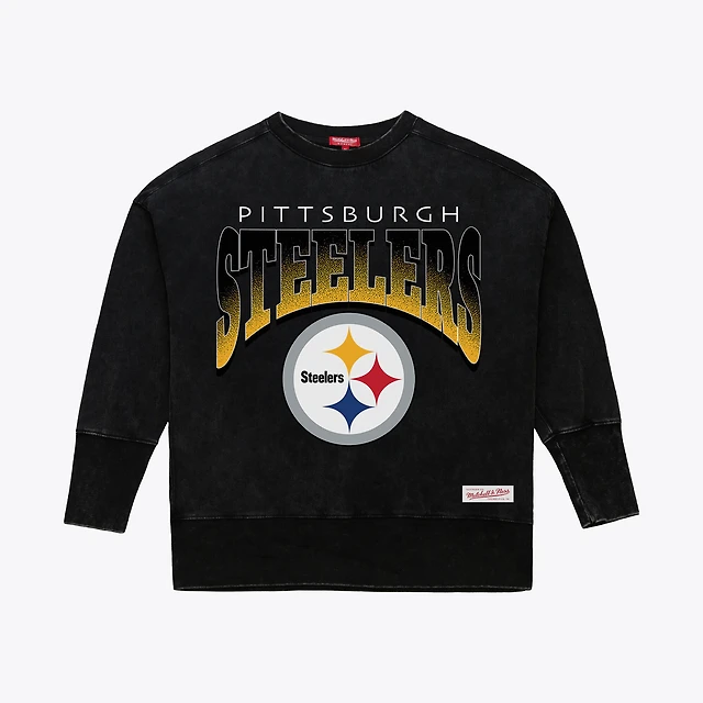 Women's Mitchell & Ness Black Pittsburgh Steelers Delineate Mineral Wash Crewneck Sweatshirt