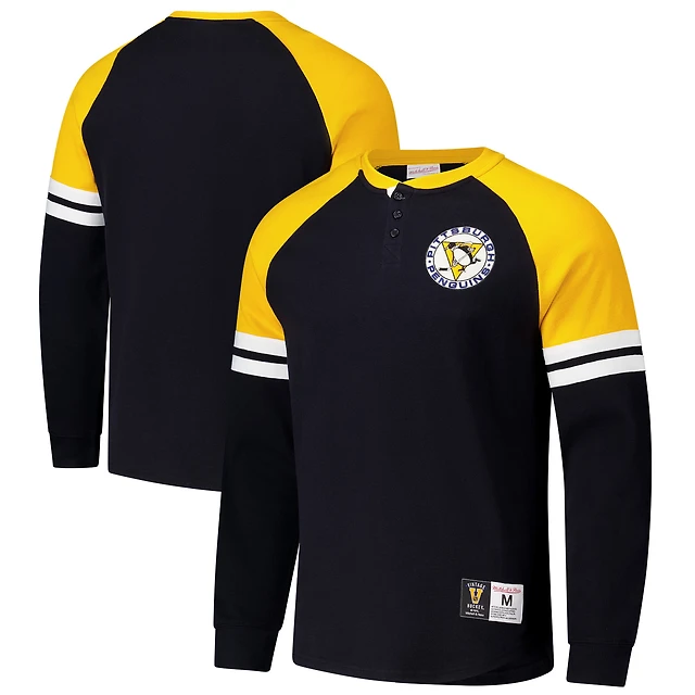 Men's Mitchell & Ness Black Pittsburgh Penguins Thermal Henley Long Sleeve T-Shirt