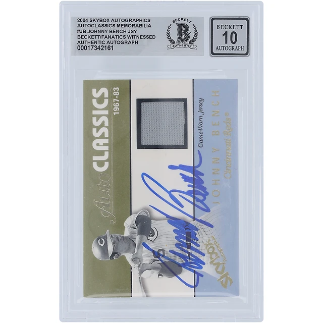 Johnny Bench Cincinnati Reds Autographed 2004 Donruss Leaf Certified Materials Fabric of the Game Jersey Relic #FG-JB #/100 Beckett Fanatics Witnessed Authenticated Card