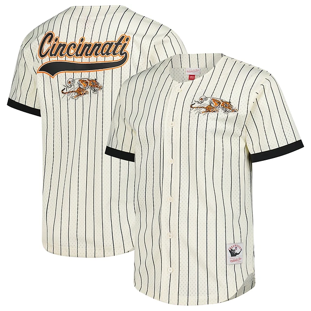Men's Mitchell & Ness Cream Cincinnati Bengals Final Seconds Vintage Logo Mesh Button-Up Shirt