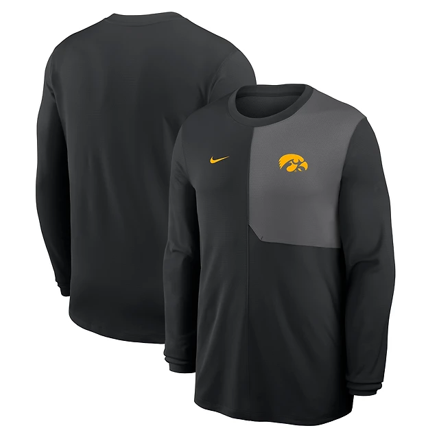 Men's Nike Black Iowa Hawkeyes 2025 Sideline Coach Therma-FIT Long Sleeve T-Shirt