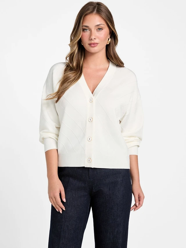 Ardene Kids Pointelle Crew Neck Cardigan in Off-White | Size | Polyester/Nylon/Spandex