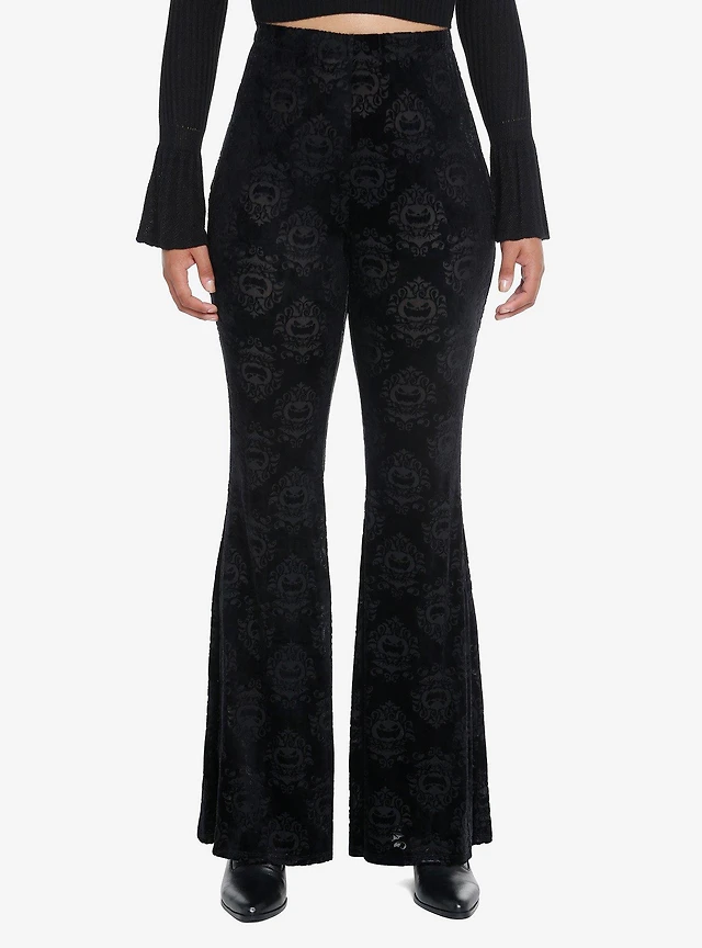 Black Velvet Lace Bell Bottom Leggings Plus Size