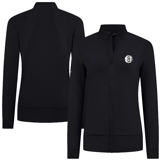 Women's Levelwear Black Brooklyn Nets Classic Stripes Quarter-Zip Top