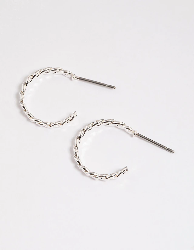 Silver Figure Eight Twisted Huggie Earrings