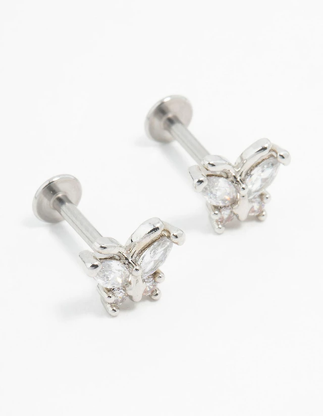 Surgical Steel Cubic Zirconia Butterfly Flat Backs