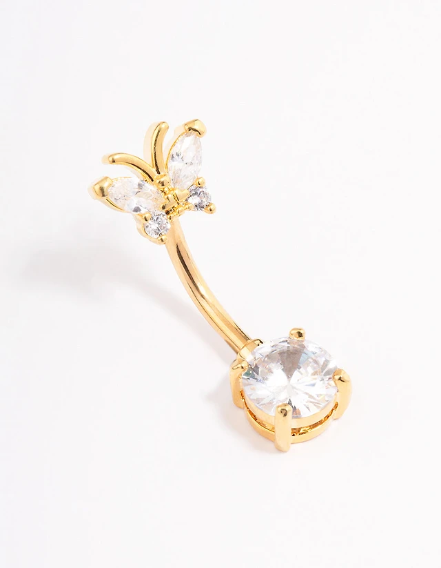 Gold Plated Surgical Steel Cubic Zirconia Butterfly Belly Ring