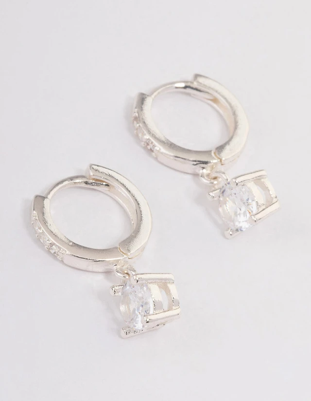 Safety Pin Earrings with Cubic Zirconia in Sterling Silver