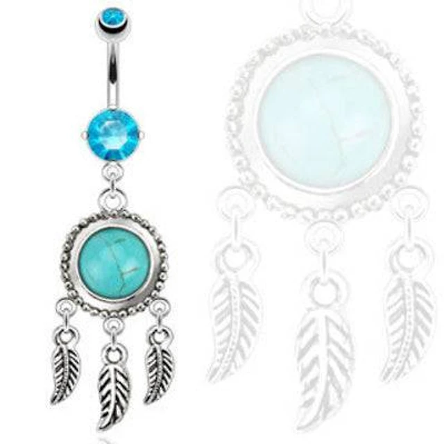 Blue Semi Precious Turquoise Dream Catcher Surgical Steel Belly Button Navel Ring