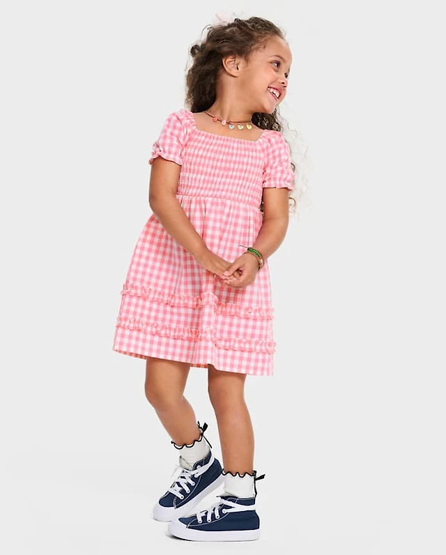 Toddler Girls Mommy And Me Gingham Poplin Smocked Ruffle Dress