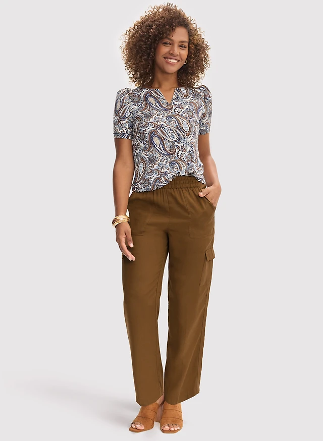 Paisley Print Blouse & Faded Hem Capri Jeans