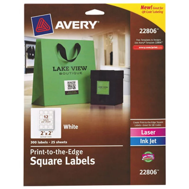 Avery Easy Peel 2" x 2" Print-to-the-Edge Square Label (AVE22806) - 300 Pack - White