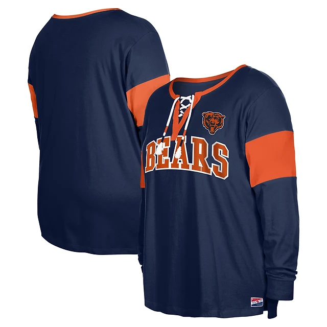 Women's New Era Navy Chicago Bears Plus Lace-Up Notch Neck Long Sleeve T-Shirt