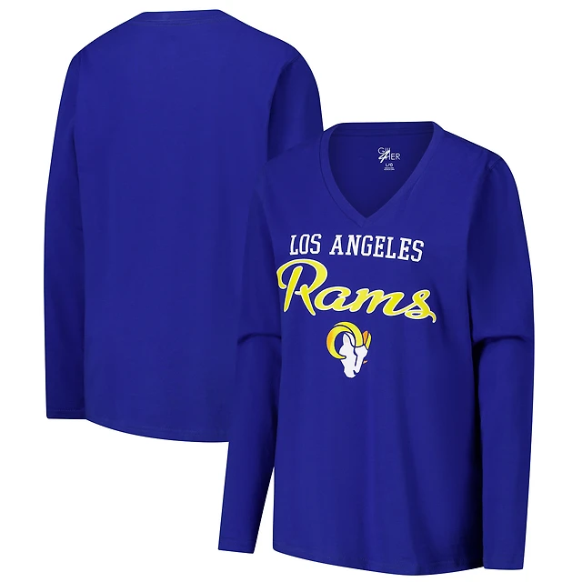 Women's G-III 4Her by Carl Banks Royal/White Los Angeles Rams Double Team 3/4-Sleeve Lace-Up T-Shirt