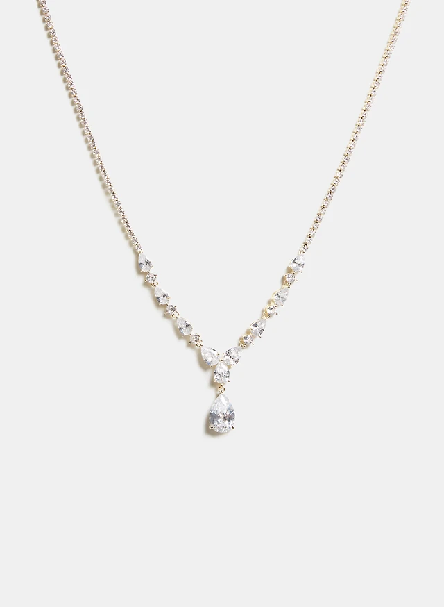 Silver Diamond Simulant Star Crystal Drop Necklace