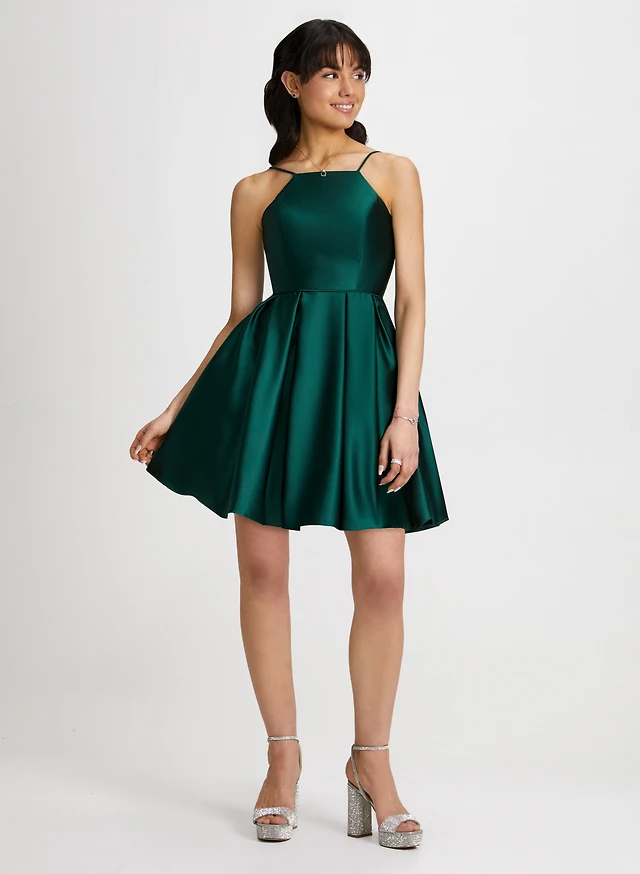 Sequinned Satin Dress & Crystal Necklace