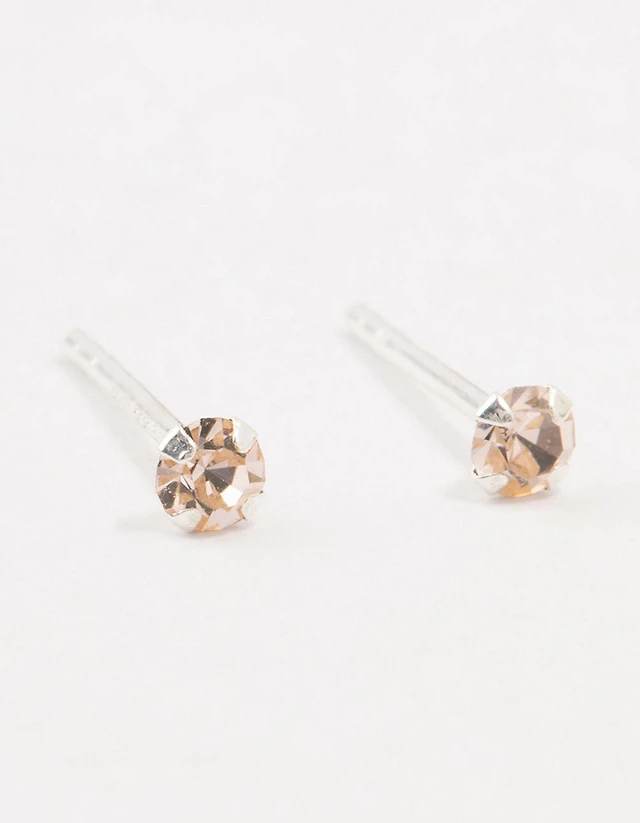 Sterling Silver Purple Czech Bohemia Crystal Stud Earrings