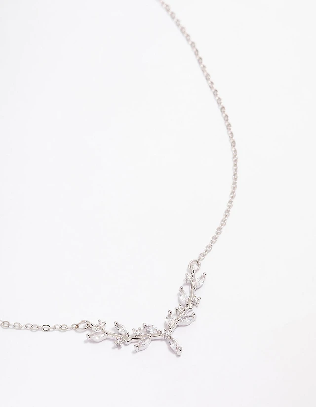 Silver Cubic Zirconia Leaf & Pearl Drop Earrings