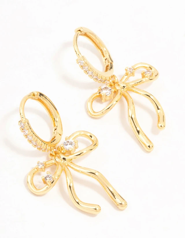 Gold Diamante Bow Drop Necklace